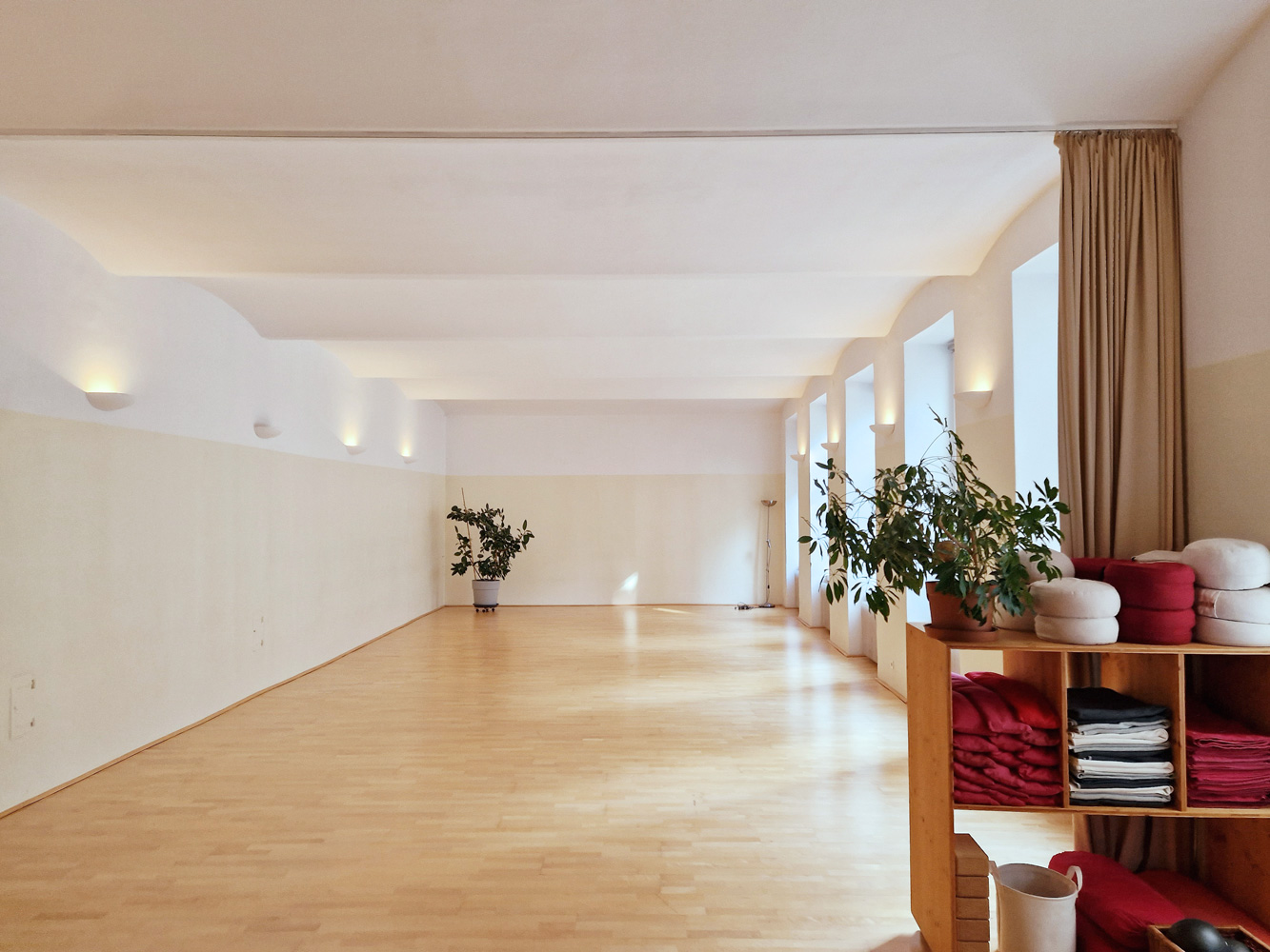 Das Studio 3 steht als Ganzes mit eigenem Eingangsbereich und mit insgesamt 74 m², Übungsraum 55 m² zu Verfügung